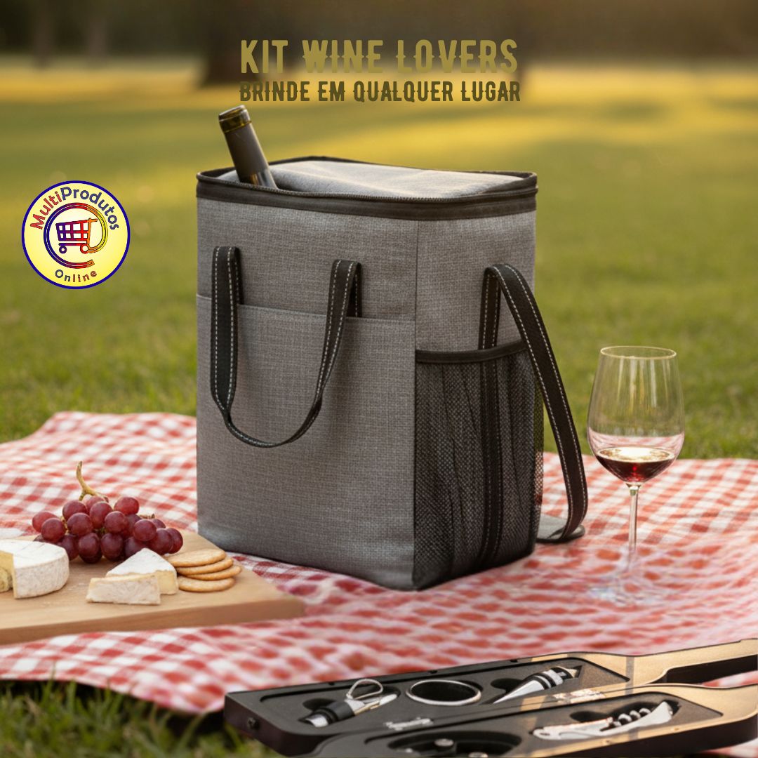 🍇 KIT COMPLETO PARA AMANTES DE VINHO – Bolsa Térmica + Kit Sommelier 5 Peças